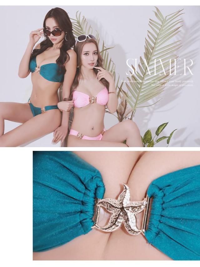 ☆ゴールドバックルの煌めきが高級感を漂わせる、インポートデザインのバンドゥビキニです。