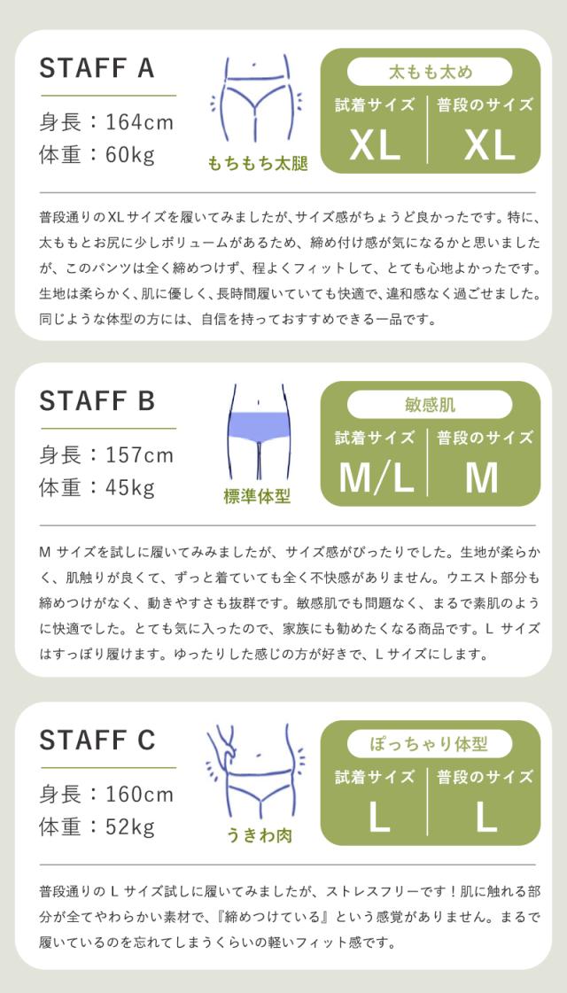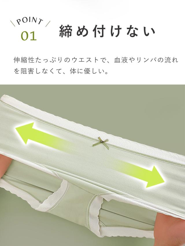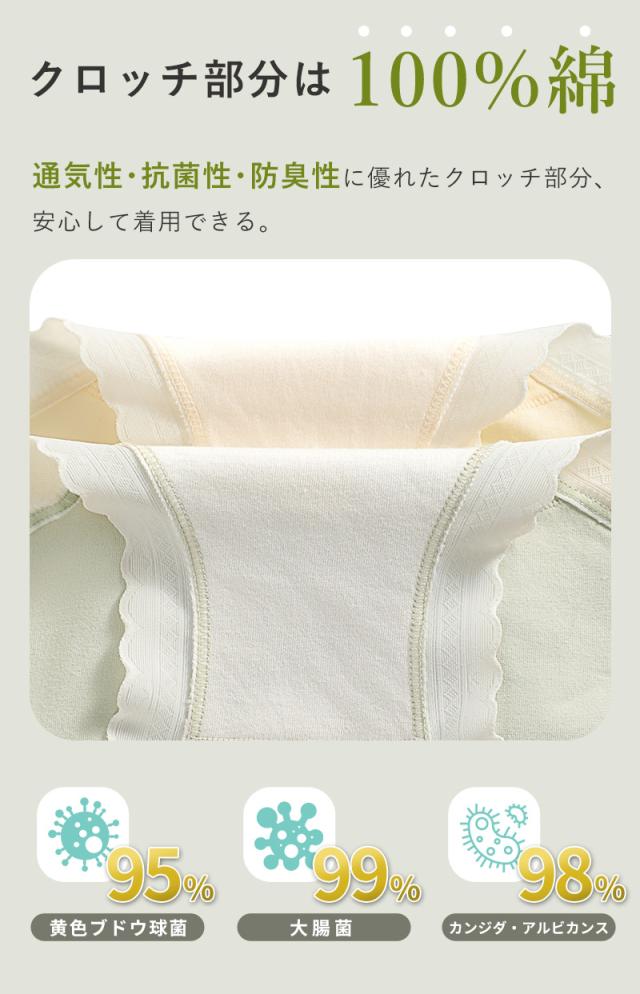 上質な綿素材 肌触り優しくて、ふわっと包まれるような安心感。 クロッチ部分は100%綿 通気性・抗菌性・防臭性に優れたクロッチ部分、安心して着用できる。