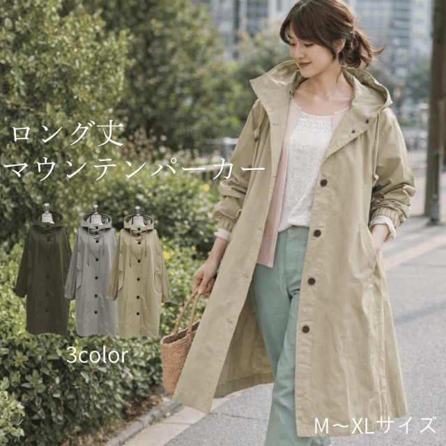 マウンテンパーカー スプリングコート レディース ロング丈 コート 春コート ロングコート トレンチコート 上着 羽織り 撥水 防水 パーカー ジャケット フード付き オーバーサイズ 大きめ 春 秋 冬 30代 40代 50代