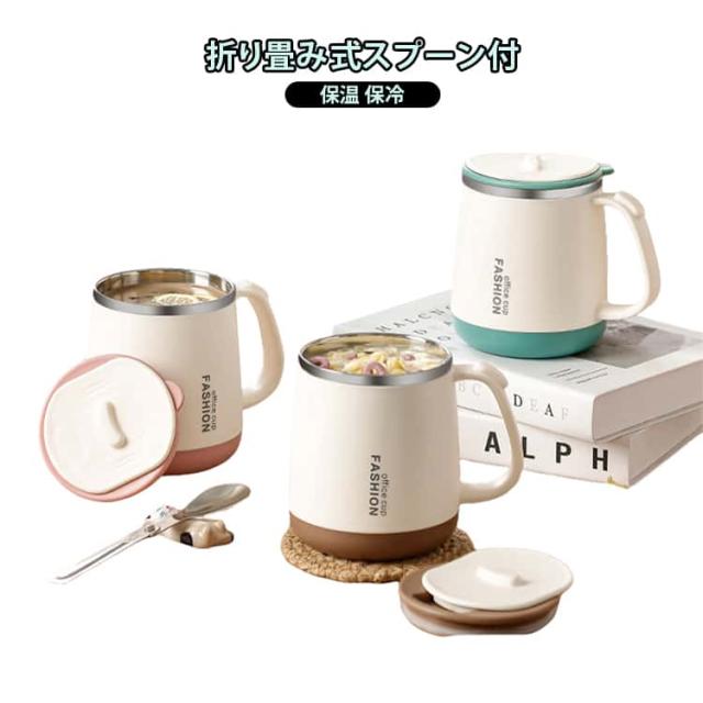 ステンレスマグ ステンレスマグ マグカップ 保冷 蓋付きマグカップ 保温マグカップ 蓋付き 470ml 保温 フタ付 タンブラー 折りたたみ式スプーン付き コーヒー コップ マグカップ おしゃれ 蓋つきステンレスマグ こぼれない 断熱マグカップ スライド式蓋付