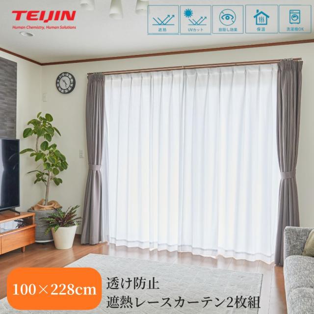 【メーカー直送品】テイジン 遮熱 ホームプロテクト レースカーテン 2枚組 100×228 UVカット uvカット uv UV カット 100 198 cm センチ カーテン レース 外から見えない 縦長 目隠し 昼夜 teijin 日本製 保温 見えない 透けない TEIJIN