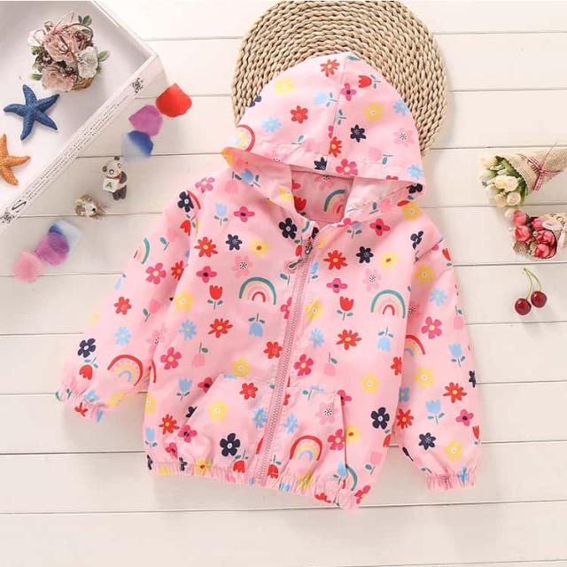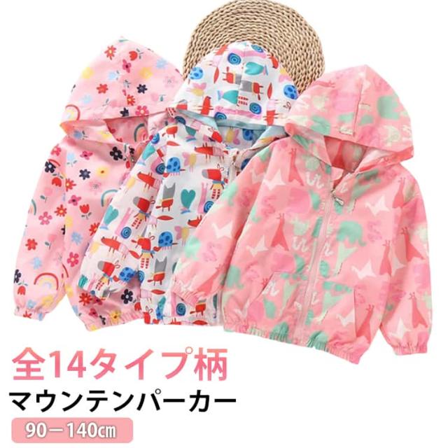 マウンテンパーカー アウター マウンテンパーカー ジャケット 春 ジップアップパーカー 秋 総柄 ジャンパー 花柄 90 120 ブルゾン フード付き ウインドブレーカー ゆったり 薄手 上着 子ども 子供服 100 110 女の子 130 140