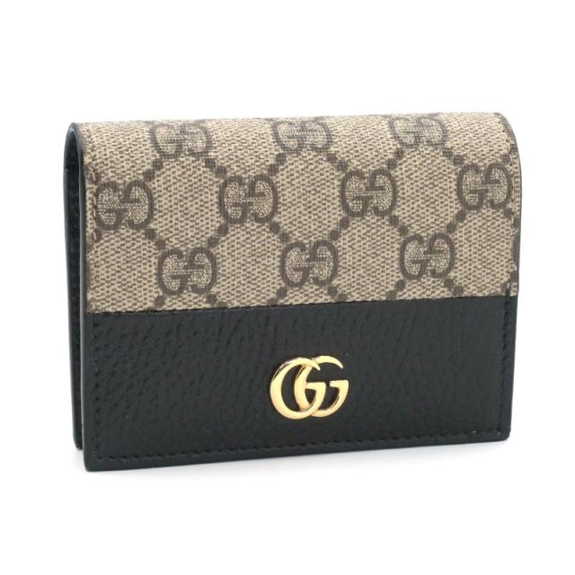 グッチ ダブルG バイカラーカードケースウォレット 658610 GGスプリーム ブラック 二つ折り財布 折りたたみ財布 GG柄 黒 中古 送料無料