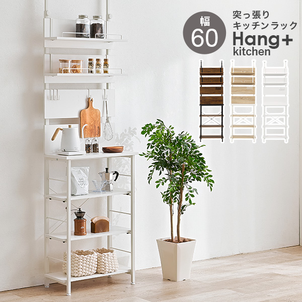 突っ張りラック 突っ張り棚 突っ張り棒 棚 壁面収納 突っ張り キッチンラック スリム キッチン おしゃれ オープンラック 幅60cm ハングキッチン キッチンラック 食器棚 調味料ラック 家電収納 台所 つっぱり