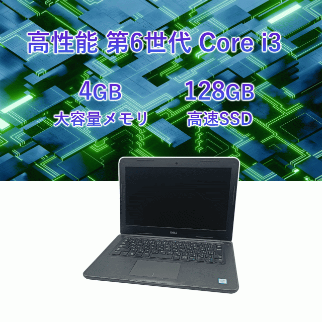 ノートパソコン 中古 Office搭載 軽量 13.3型 DELL 第6世代 Core i3 メモリ 4GB SSD 128GB Windows11 ノートPC テレワーク 学習用 事務用 中古pc デル Latitude 3380 すぐに使える 設定済 WEBカメラ 日本語キーボード