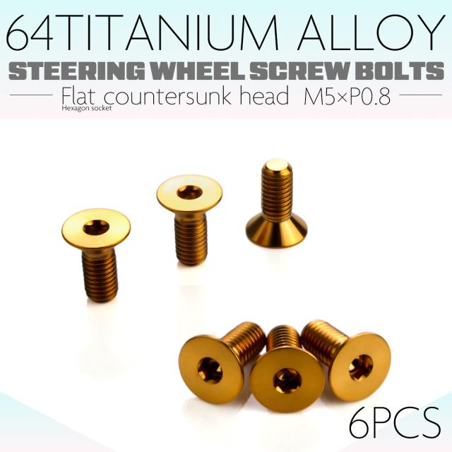 チタン ステアリングボルト M5 P0.8 6本セット 六角穴 ハンドルボルト 皿ボルト ゴールド JA1896