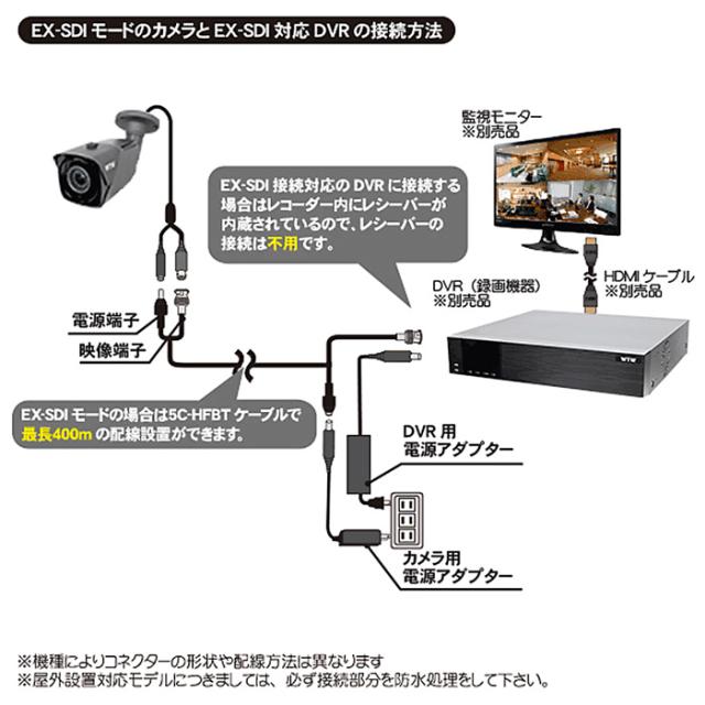 EX-SDI・HD-SDI・AHD・HD-TVI・HD-CVI・アナログに切替え可能なマルチモデルです。