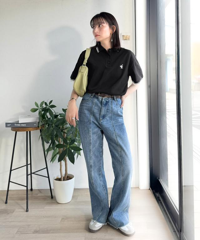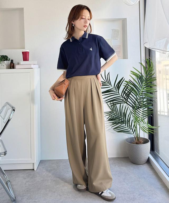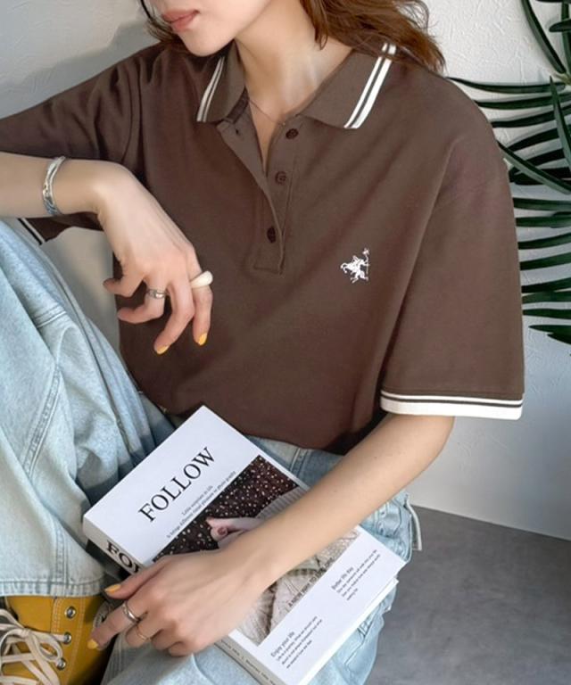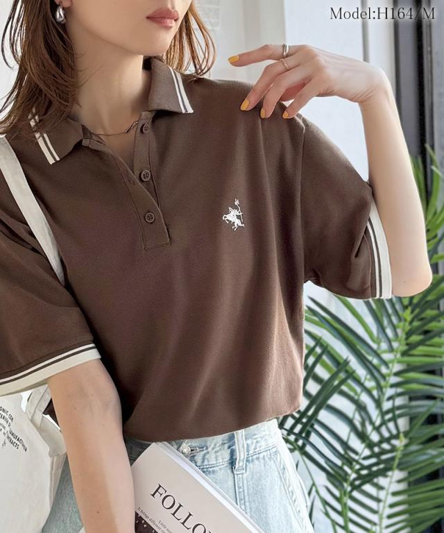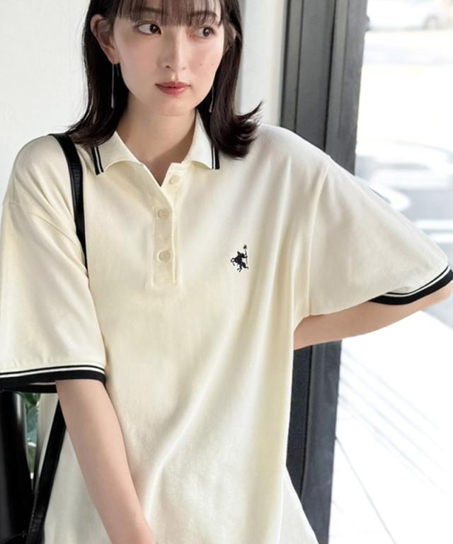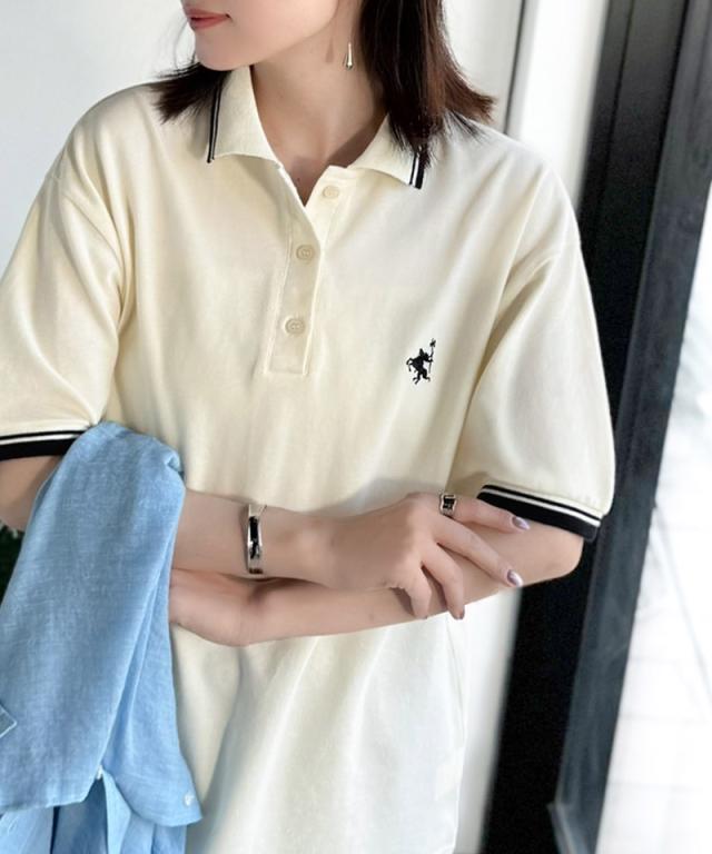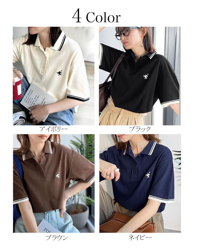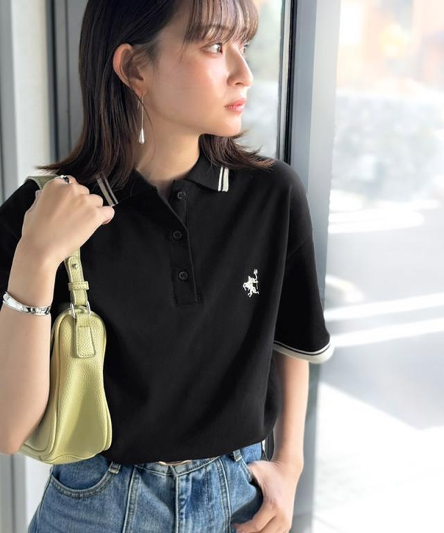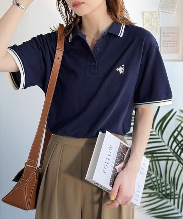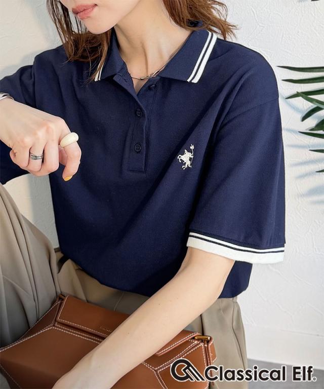クラシカルエルフ夏新作 ポロシャツ レディース 半袖 トップス クラシカル スポーティ 鹿の子 ロゴ刺繍 綿100% メンズライク 甘辛バランス 華奢見え お洒落 ゆったり ラインデザイン 大きいサイズ 2026ss ce1240114
