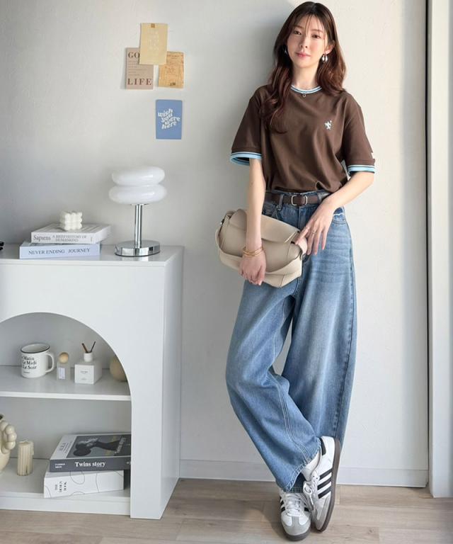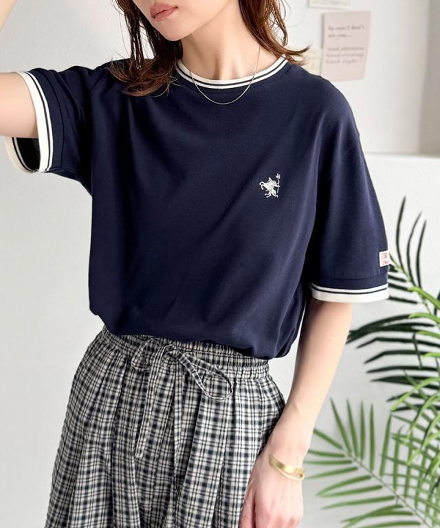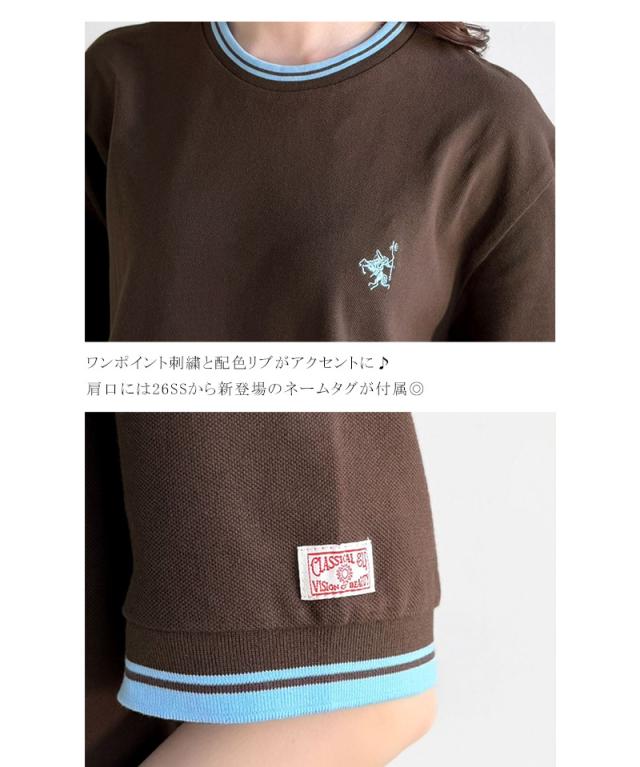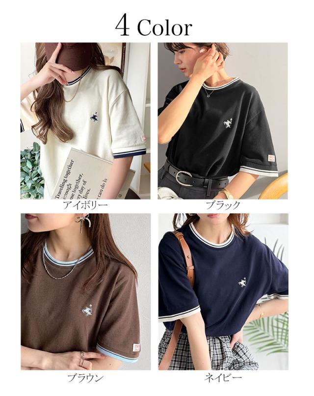 クラシカルエルフ夏新作 tシャツ レディース 半袖 ロゴ トップス カットソー 鹿の子 胸刺繍 ルーズ ラウンドネック シンプル 刺繍ロゴ リラックス リブ ライン入り 伸縮性 メンズライク きれいめ カジュアル 大きいサイズ 黒 白 2026ss ce1240116