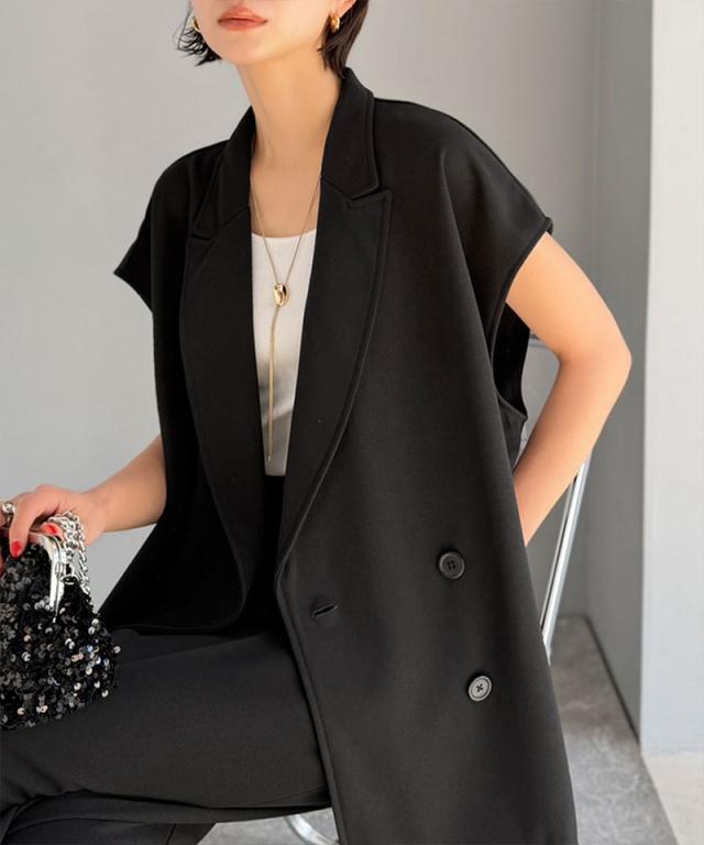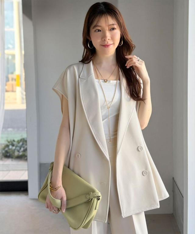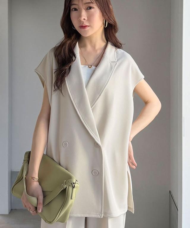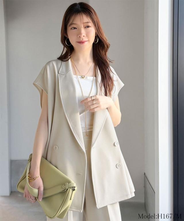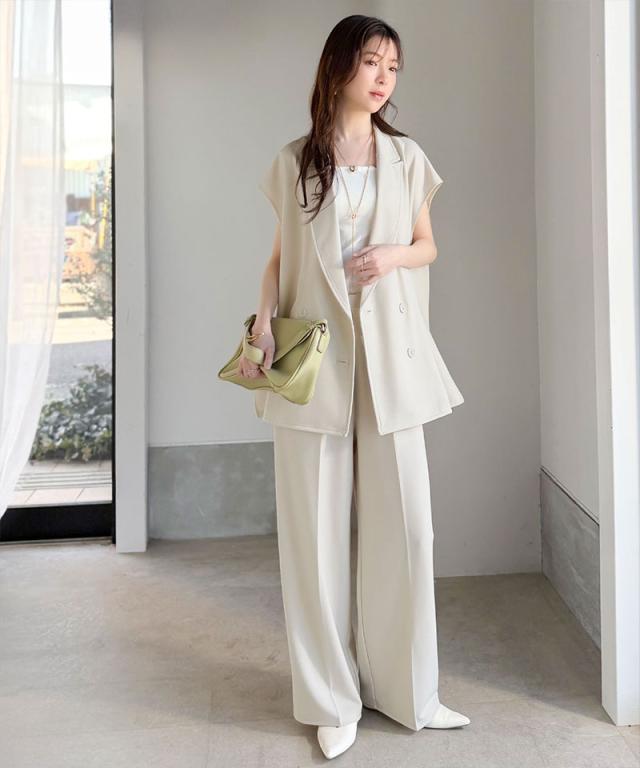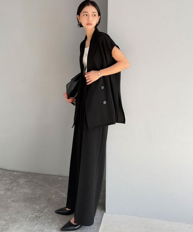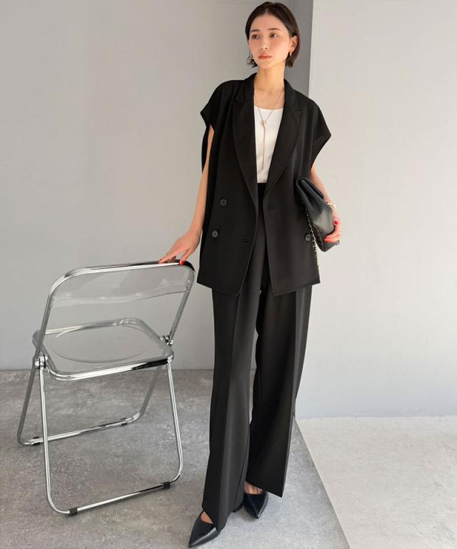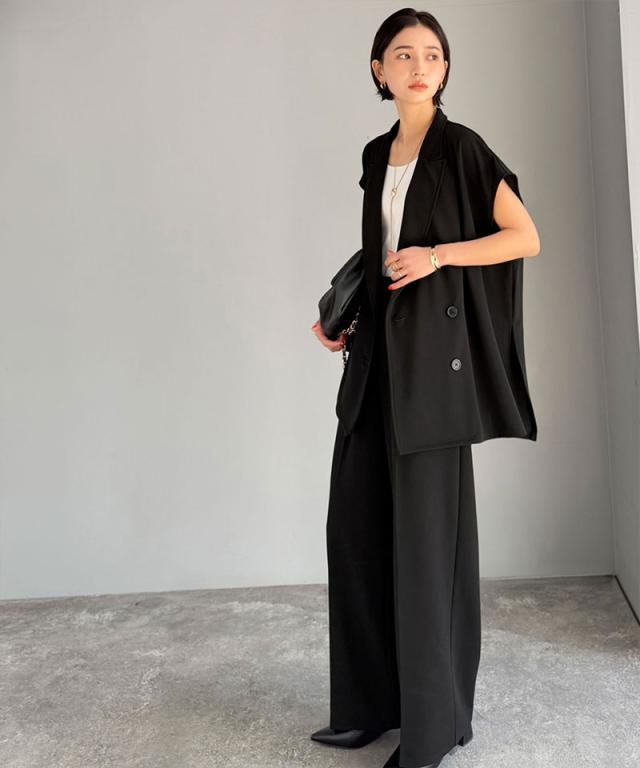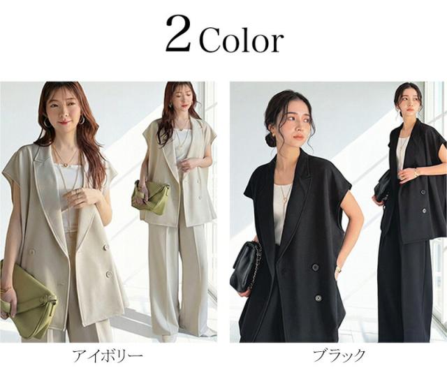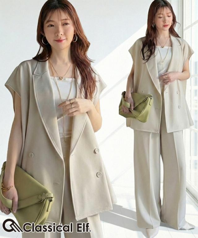 クラシカルエルフ夏新作 2点セット セットアップ レディース カジュアル きれいめ ダブル テーラード ジレ タック パンツ オフィス 卒業式 入学式 大きいサイズ 2026ss ce1000011