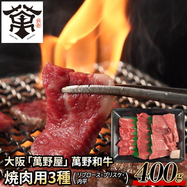 | 大阪 「萬野屋」 萬野和牛 焼肉用3種(リブロース・ブリスケ・内平)計400g |
