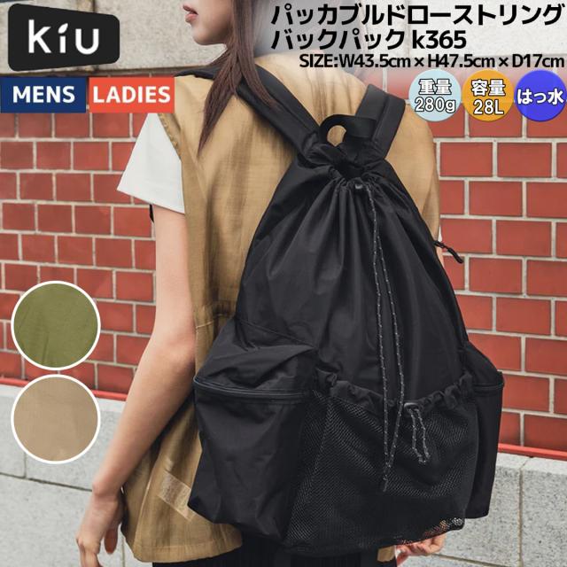 キウ Kiu パッカブルドローストリングバックパック k365 メンズ レディース ユニセックス カジュアル バッグ リュック はっ水 アウトドア キャンプ コンパクト収納 軽量 A4 K365 911 906 900