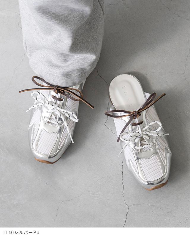 ミュール ミュールサンダル サンダル スリッパ つっかけ かかとなし カジュアルシューズ スニーカーサンダル 履きやすい フラットシューズ ぺたんこ靴 レディース スクエアトゥ スクエア スニーカー ミュールスニーカー スニーカーミュール ダブルシューレース 靴紐 高反発クッション 高反発 クッション すべりにくい 痛くない 歩きやすい 疲れない 疲れにくい おでかけ お出かけ カフェ ショッピング 買い物 お散歩 ワンマイル 散歩 デイリー 日常 普段使い 日常使い 普通履き 0.5cmヒール 0.5センチヒール ローヒール ぺたんこ 2E 肌色 ベージュ 銀 シルバー S 22cm 22.5cm M 23cm 23.5cm L 24cm 24.5cm 春 夏 秋 冬 スムース調 合皮 PU スエード調 menue メヌエ outletshoes アウトレットシューズ welleg ウェレッグ