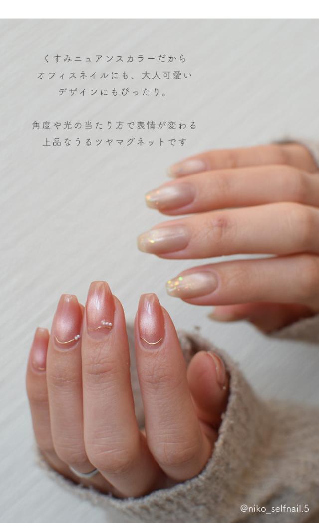 ふんわりと霞がかったような、 やわらかな光をまとうマグネットジェル。 繊細なマグネット粒子が生み出す奥行きと立体感で、 派手すぎないのに印象的な指先へ。 くすみニュアンスカラーだから、 オフィスネイルにも使いやすい。 角度や光の当たり方で輝きが変わる、 透明感あふれる“うるツヤ”マグネットネイル。 商品の特徴 ・くすみカラーで肌なじみ抜群 ・繊細マグネット粒子で奥行き感アップ ・派手すぎない上品な輝き ・オフィスネイルにもおすすめ ・セルフネイル・サロンワーク対応 こんな方におすすめ ・上品なマグネットネイルが好き ・派手すぎない大人可愛いデザインを探している ・オフィスOKのジェルネイルが欲しい ・くすみ系ニュアンスネイルが好き ・4mlサイズでお試ししたい |