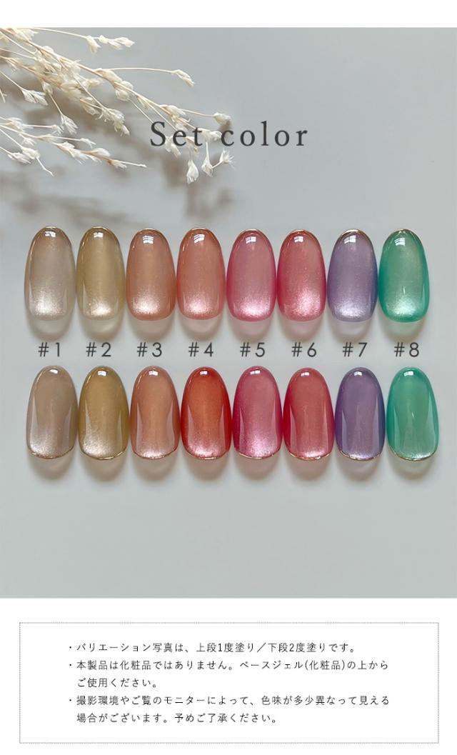 ミスティマグネットジェル 全8色セット 4ml くすみカラーで叶える上品うるツヤネイル オフィスにも使える大人ニュアンス 水光マグ ジェルネイル
