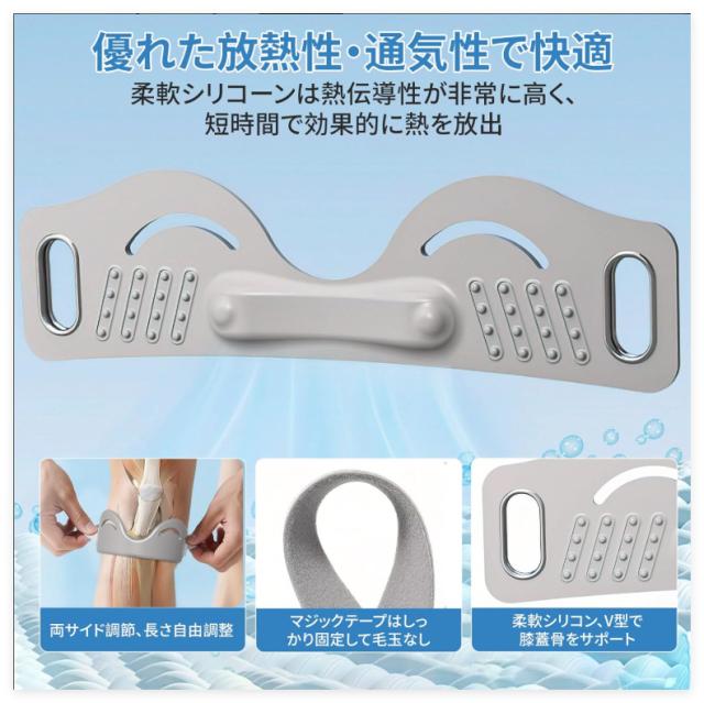 【膝蓋骨ストラップ】本体には柔らかなシリコン素材を、両側の調節ベルトには高耐摩耗性のナイロンスレッドを採用。使用時の快適さを保ちながら、卓越した耐久性を実現しました。長さ17.5cmのシリコン部分がひざを広範囲で包み込み、優れた支持力を発揮します。