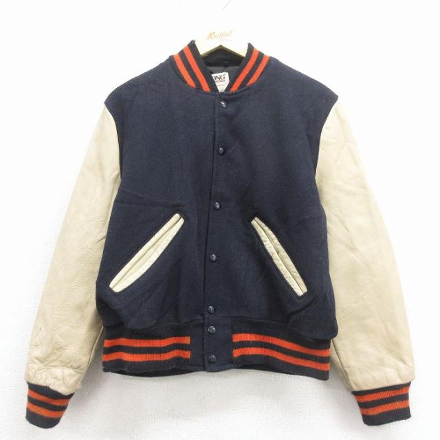 古着 デロング 長袖 スタジャン キッズ ボーイズ 子供服 90年代 90s 袖レザー USA製 黒 26feb04