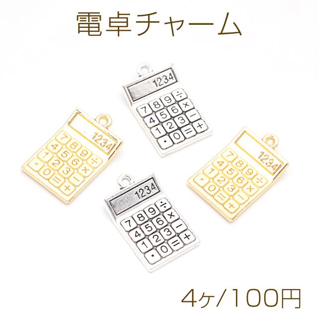 電卓チャーム 卓上 計算機 文房具 ミニチュア メタルチャーム 約15×24mm(4ヶ)