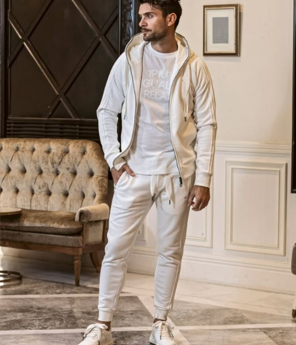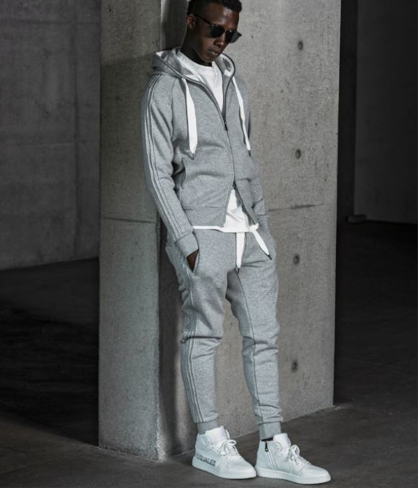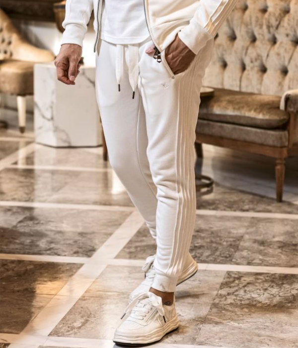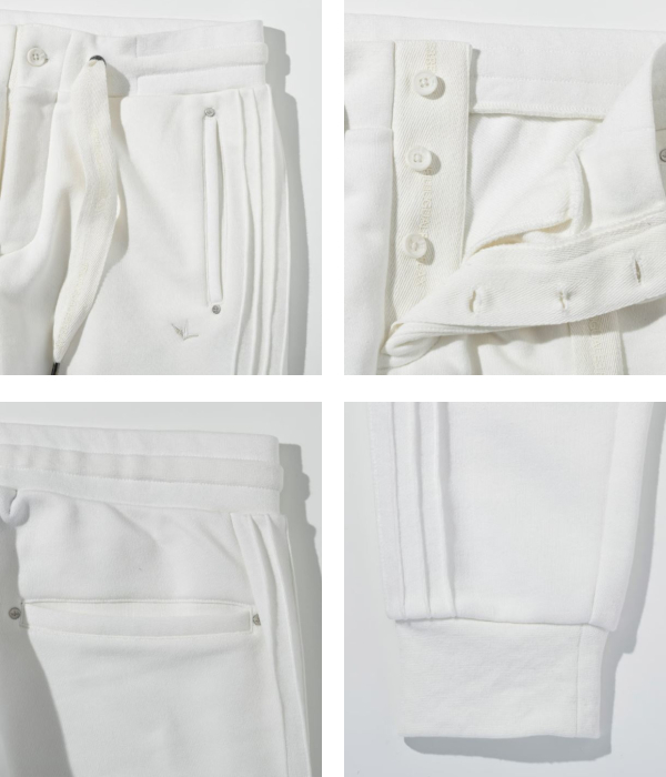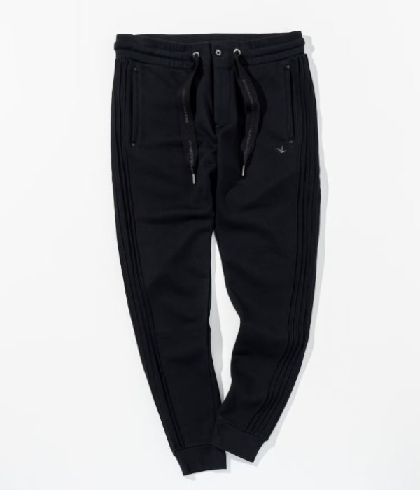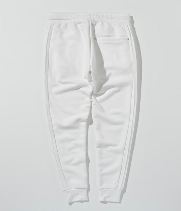 サイドに施したピンタックラインが印象的なスウェットパンツ。