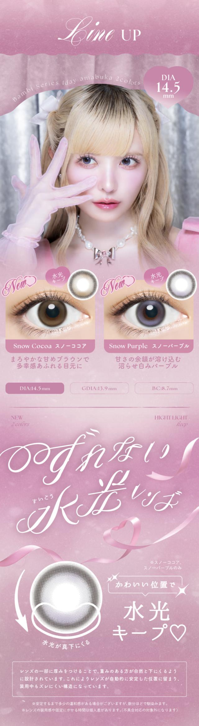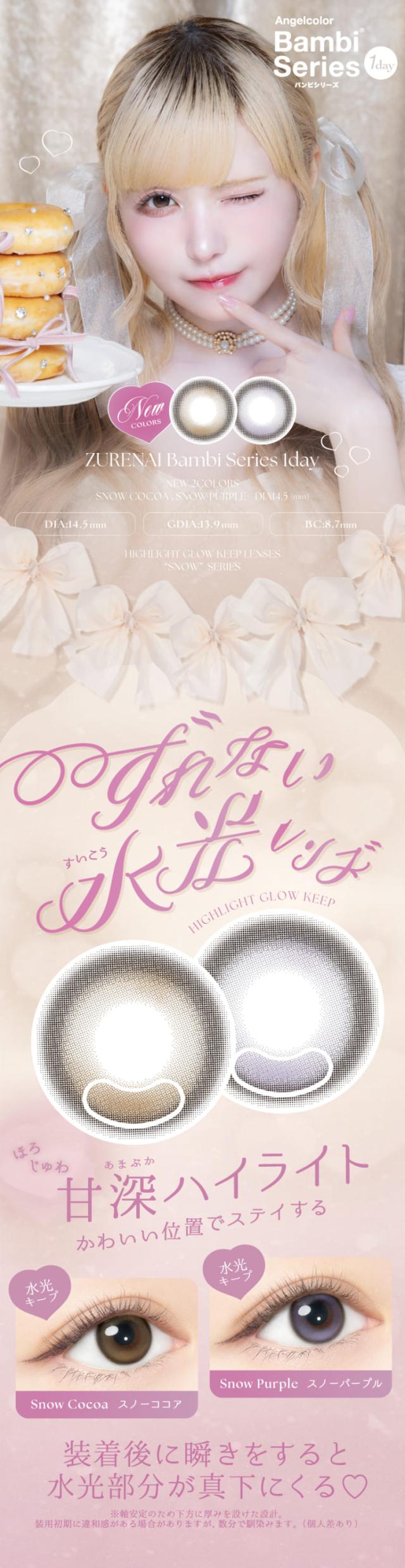 Angelcolor Bambi Series 1day カラコン バンビシリーズ ワンデー 水光レンズ 新色 スノーパープル スノーココア ナチュラル 盛れる 韓国風 度あり 度なし UV DIA14.2mm