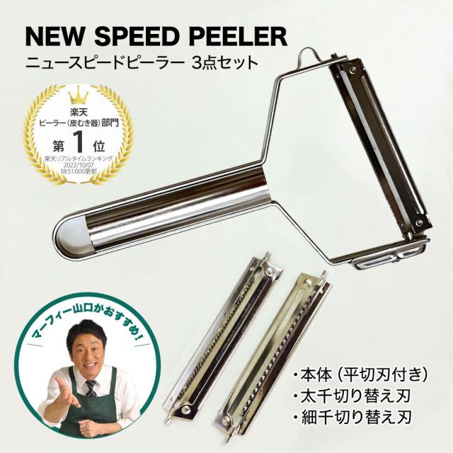 ニュースピードピーラー3点セット本体+細千+太千 キャベツ 千切り ピーラー ツマ 鍋 きんぴら にんじん 野菜 ステンレス 日本製 メール便 皮むき器 調理 キッチン 便利グッズ 有吉ジャポン QVC シューイチ キャンプ 時短調理 新生活 お弁当