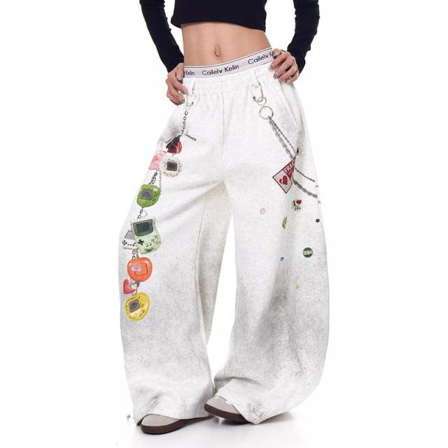 Y2Kレトロチックなポップカルチャーテイストのワイドパンツ。