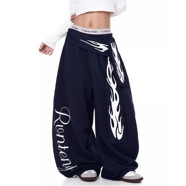 スウェット ワイドパンツ レディース メンズ ボトムス シルエット ゆったり バレルレッグ パンツ ドレープ 個性的 pLegLad ストリート系 トレンド ボトムス スエット ファイヤーパターン 白 ダンス 衣装 学祭 サークル スタジオ 体型カバー 20代 30代 40代 ブラック 春夏 秋