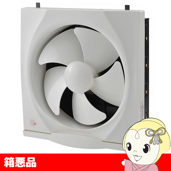 こちらの商品は、【箱悪品】です(写真参照)。ご了解いただいたものとしてご購入お願いいたします。検品は万全の注意を払い確認をしておりますが、キズやヘコミを見落としている場合があります。到着後の傷やヘコミによる返品・返金・値引き等はお受けできません。お気にされるお客様は、ご購入をお控えいただきますようお願いいたします。動作・機能的に問題がある場合は、返品にてご対応いたします。ノークレーム・ノーリターンでよろしくお願いいたします。 ※こちらの商品は、純正フィルターの【取り付けができないモデル】です。 ※こちらの商品は一般家庭用です。厨房でのご利用など、業務用途ではご使用いただけません。 ※取り付け枠サイズをご確認ください。 取り付け木枠サイズは35cmとなります。羽根径とお間違いないようご注意ください。 ■外形寸法:縦41.0×横40.0×奥15.6cm ■羽根径:30cm ■取付木枠寸法:35cm ■100V 50/60Hz ■シャッター連動引きひもスイッチ ■騒音:48/47dB ■フィルター:取付不可 ※記載は商品仕様の一部です。仕様説明不足等の理由での返品はできません。特に適合等は必ずご確認ください。