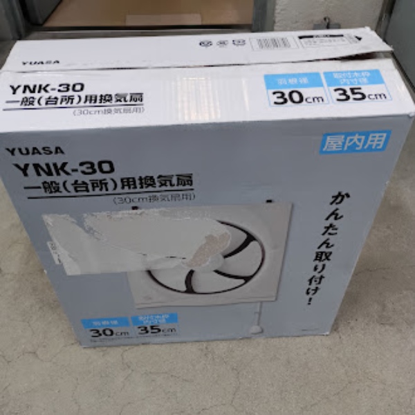 【箱悪品】ユアサプライムス 換気扇 キッチン 台所 一般換気扇 羽根径30cm YNK-30 引き紐スイッチ連動式シャッター 埋め込み木枠サイズ 35cm