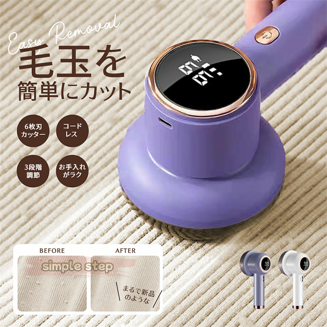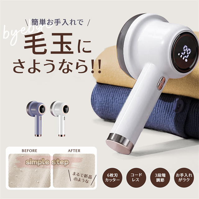 毛玉取り けだまとり 電動 LCD液晶ディスプレ 毛玉取り機 強力6枚刃 スピード3段階調整 様々な衣類に対応 切れ味アップ 生地を傷めない 毛玉取り器 USB充電式 コードレス使用可 持ちやすい 毛玉とり