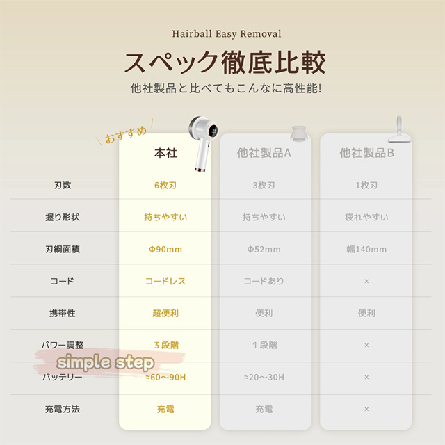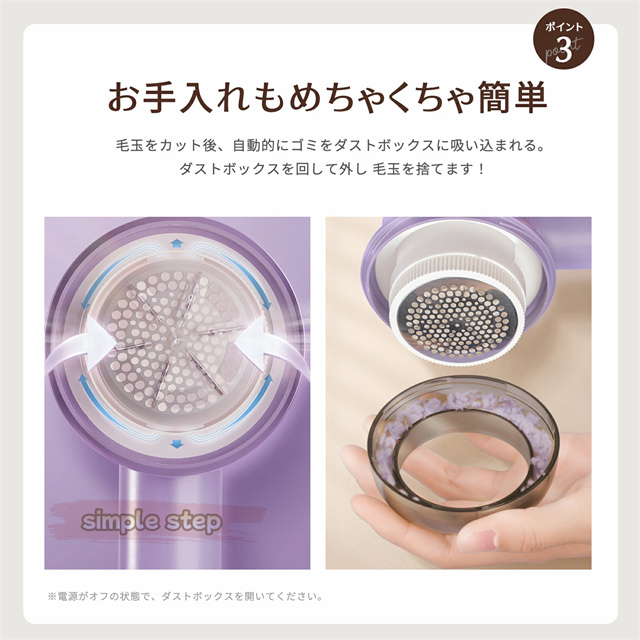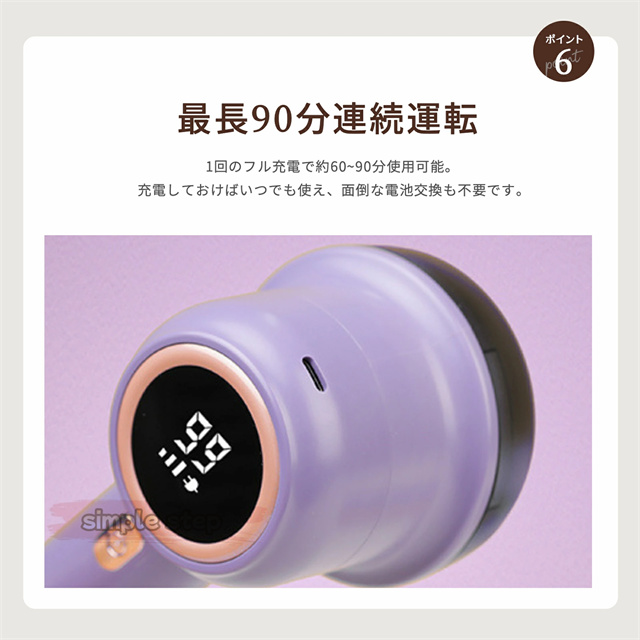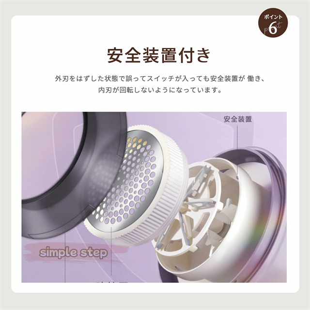 高品質のステンレス製強力6枚刃を搭載され、どんな頑固な毛玉でもパワフル高速回転で簡単に取れます。