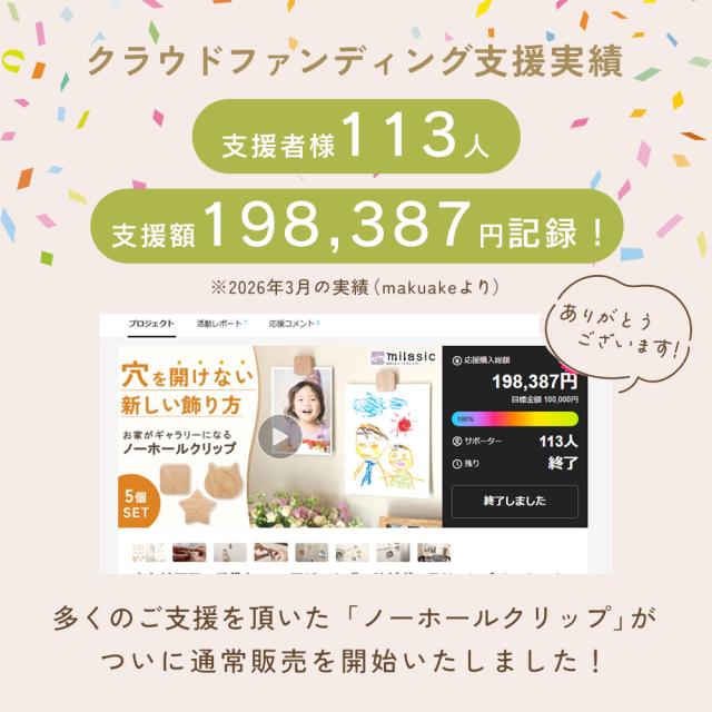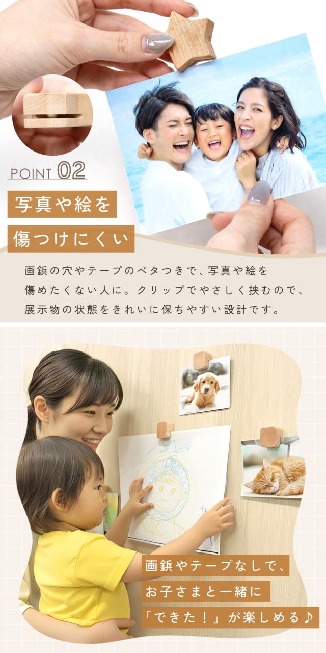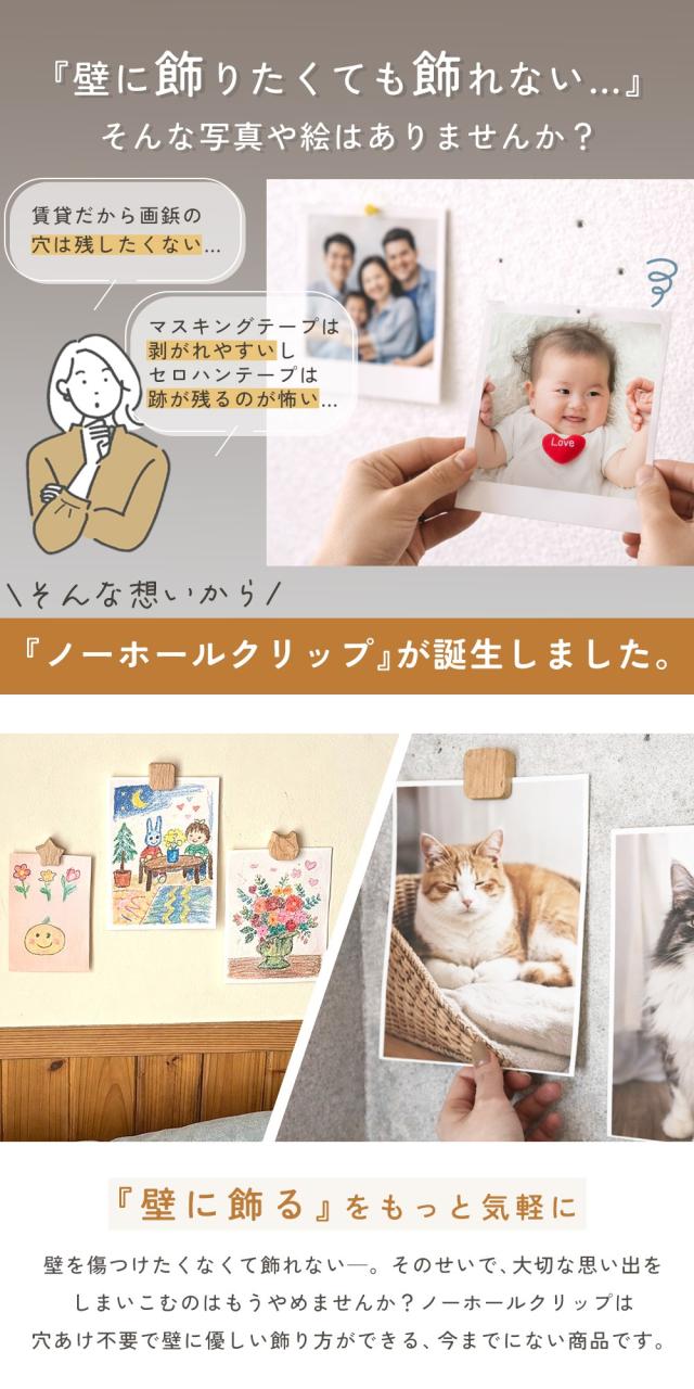 ・穴をあけずに飾れる木製ノーホールクリップセット