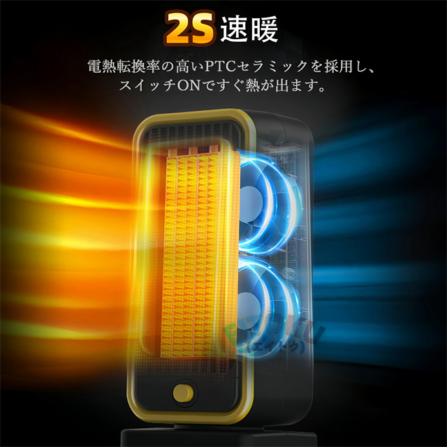 【1,000円OFFクーポン使える!】ヒーター セラミックヒーター 小型 転倒自動OFF 2秒速暖 静音 過熱保護 ファンヒーター 電気 暖房器具 省エネ 足元ヒーター PSE認証済 節電 無臭 温風 寝室 脱衣所 浴室暖房機 トイレ オフィス アウトドア 車中泊