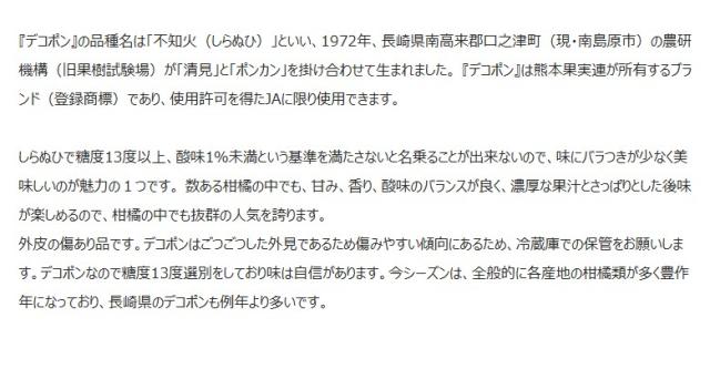 ※デコポンのJA長崎せいひでお届けしますが、入荷次第で他の産地のデコポンに変更になる可能性もございます。その時は、少なくとも品質的に同等以上のものに変更いたしますので、予めご了承ください。