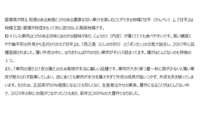○愛媛県産 甘平 約1.7kg・・・粒々感と甘さが際立つ、愛媛県が生み出した品種。市場のプロたちが絶賛