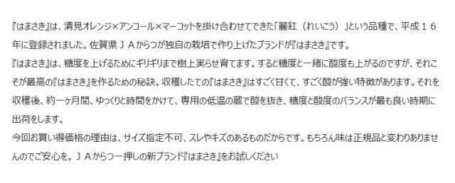 ○佐賀県産 はまさき 約1.7kg・・・果汁たっぷりのJAからつの柑橘。せとかに近いです。種もほぼ入りません。