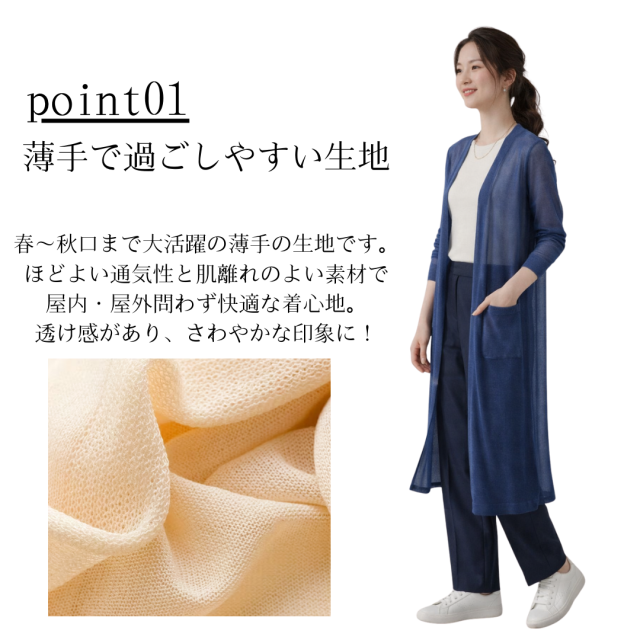 接触冷感ロングカーディガン。