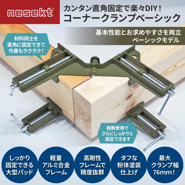 [ネセクト] コーナークランプ ベーシック 粉体塗装オリーブグリーン8個セット アルミ合金 木工DIY 直角固定 90°固定金具[日本国内企画品 1年保証]