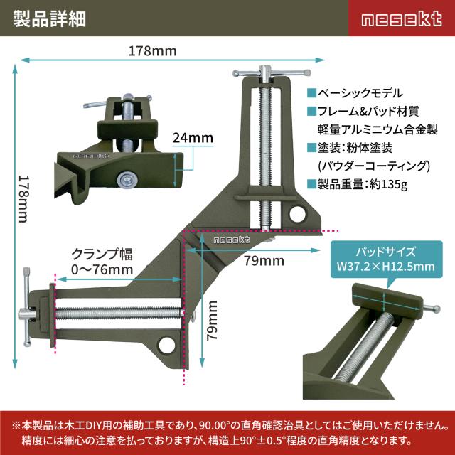 【高精度!材料同士を直角に固定できる】コーナークランプを使用することで木工作などにおいて材料同士を90度に固定することができます。直角の精度も高く、デジタルスケールの計測でも誤差は1度未満!高精度な仕上がりを求める方には必須の商品です。
