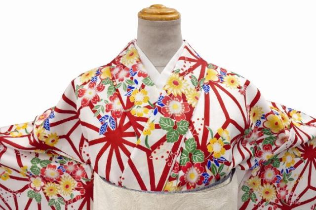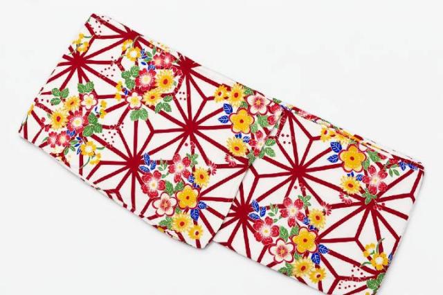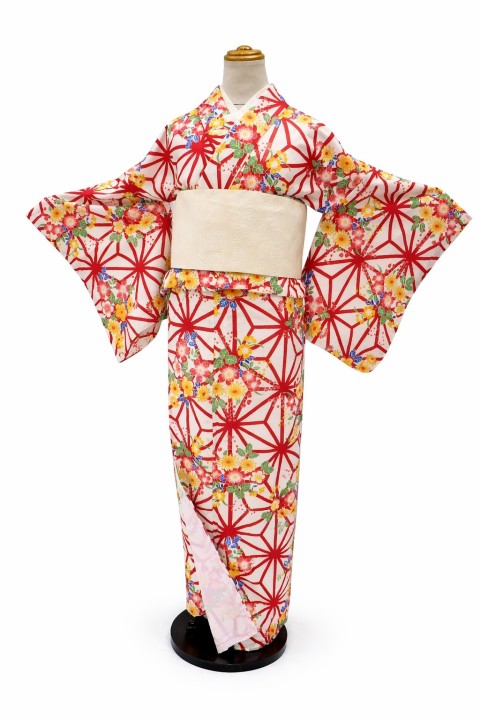 ベースとなる白地色に、麻の葉柄が美しく描かれています。