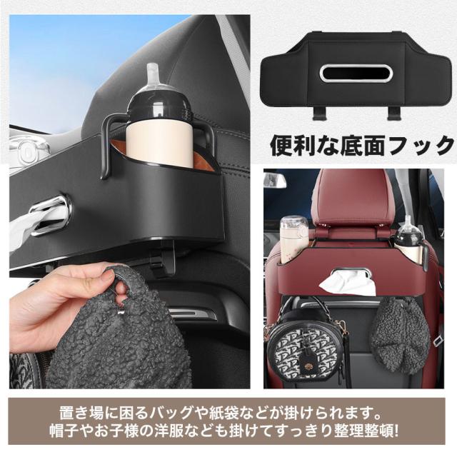 車 ティッシュケース ティッシュボックス 車用シートバック収納ボックス ドリンクホルダー おしゃれ 多機能 収納 カー用品 ドリン