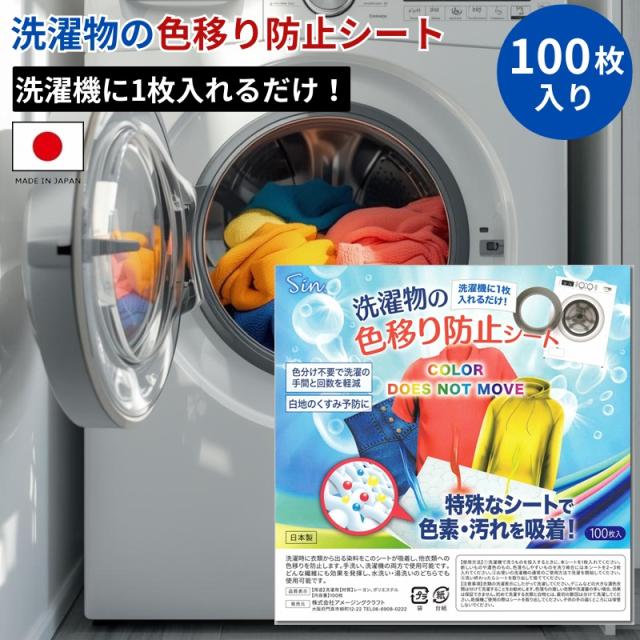 洗濯物 色移り防止シート 洗濯機 100枚入 日本製 ドラム式・縦型式洗濯機・手洗い対応 大容量 洗濯用 色移り予防 人気 メール便