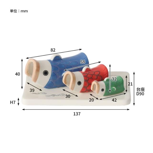 大中小の3匹が並ぶ姿は見ているだけでほっとする可愛さがあり、こどもの日や端午の節句を気軽に楽しめるインテリア雑貨としておすすめです。