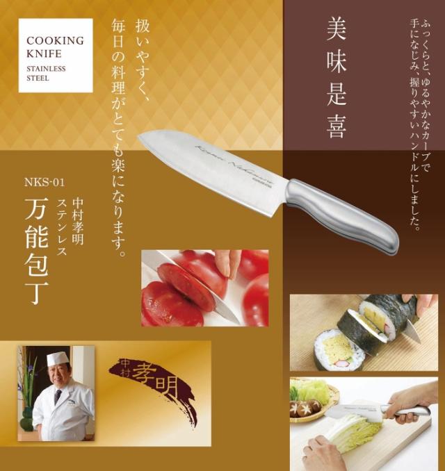 最安値挑戦 送料無料 中村孝明 ステンレスサンド万能包丁 NKS-01 カクセー ステンレス 野菜カット ナイフ ステンレス キッチン 料理人 包丁 万能包丁