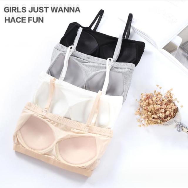 インナー チューブトップ ストラップ付 肌着 カップ付 キャミソール ノンワイヤー カップ付き 下着 パッド付き ストレッチ 通気性 締め付けない ベアトップ 伸縮性