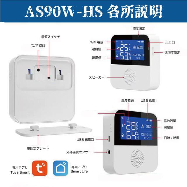 温度計 湿度計 熱中症対策 熱中症 警報 温度 湿度 健康管理 体調管理 乾燥 風邪 室内 デジタル アラーム 温湿度 サーモハイグロメーター 熱中症警報 USB充電式 AS90W-HS 温湿度計 壁掛け 卓上 アプリ 管理 遠隔 寝室 ベビー 赤ちゃん 子供 お年寄り 老人 犬 猫