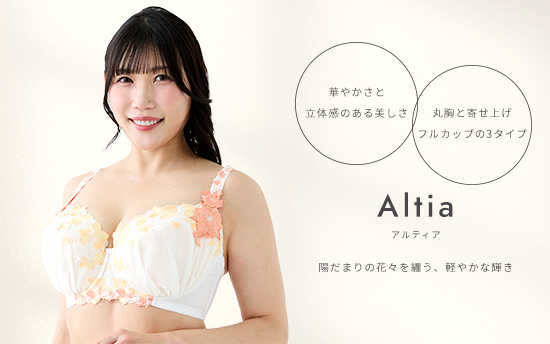 素肌に溶け込むようなミルキーなベースに、陽だまりのようなあたたかい花々を散りばめたランジェリー。