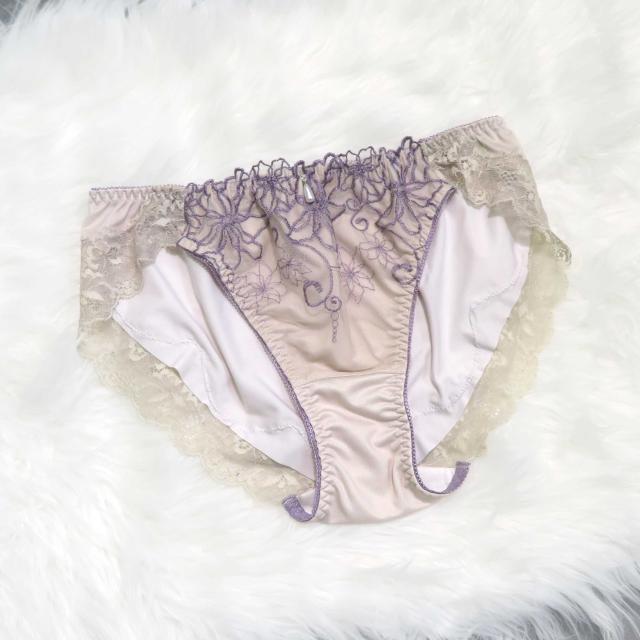 線画調のクレマチス刺繍をあしらったシックなデザイン。身につけるだけで心躍る大人のための大人のためのフルバックショーツ。
