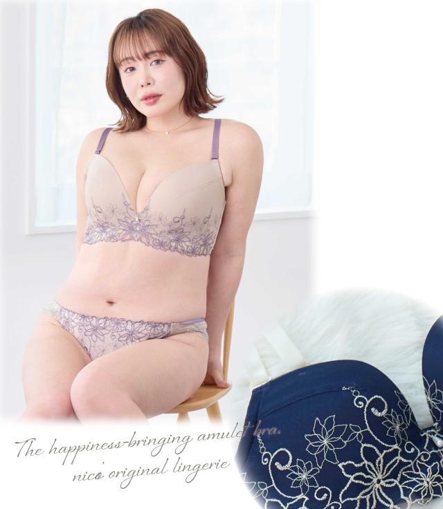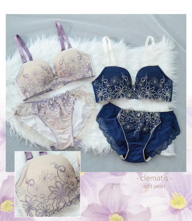 線画調のクレマチス刺繍をあしらったシックなデザイン。身につけるだけで心躍る大人のための大人のためのブラセット。