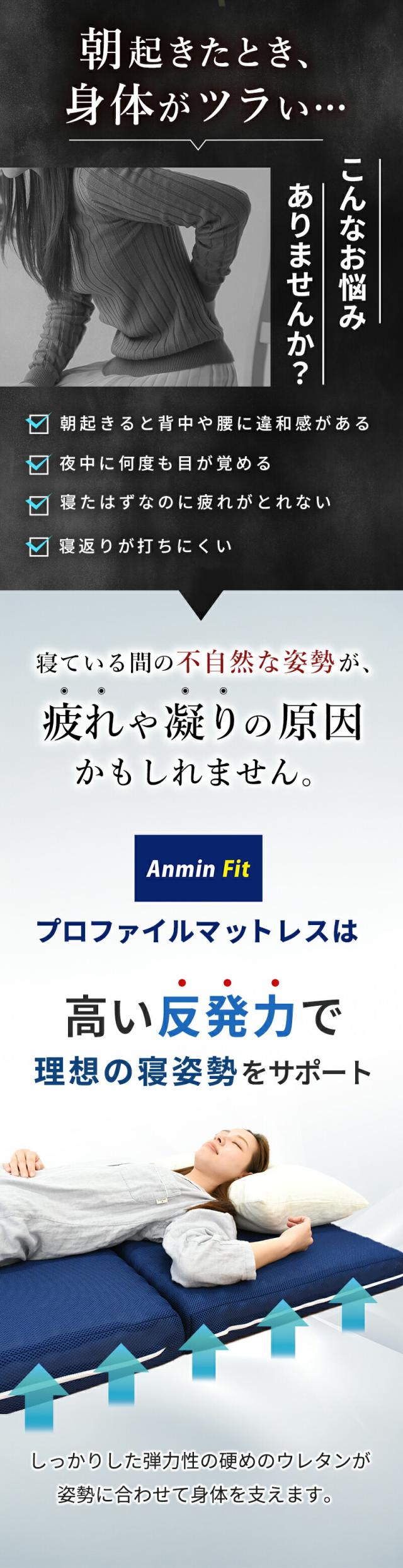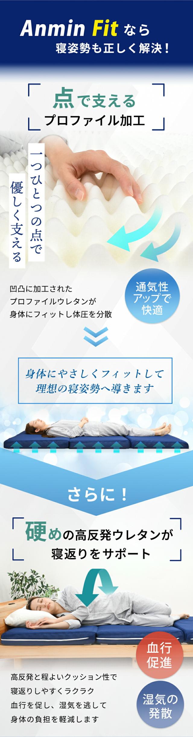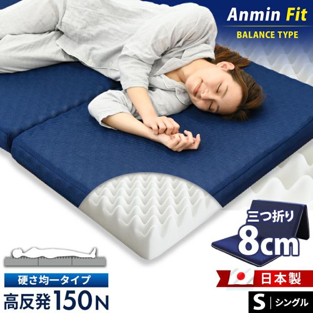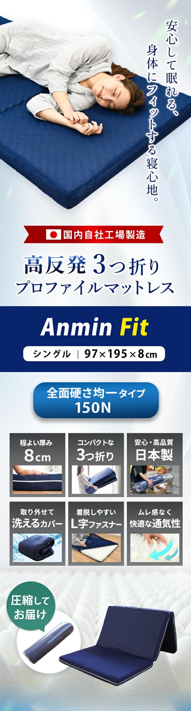 [keyword| マットレス シングル 日本製 高反発 三つ折り 150N 腰部170N スタンダード 厚み8cm 点で支える プロファイル 折りたたみ 自社製造 体圧分散 敷布団 硬め 敷き布団 腰痛 Anmin Fit 安眠フィット]